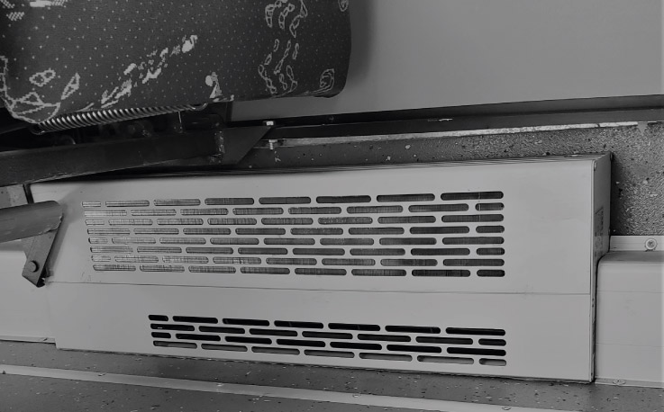 Consta de aletas de aluminio (serpentín) distribuidos el salón de pasajeros; sopladores eléctricos silenciosos, ubicados estratégicamente para un flujo homogeneo del calor en todo el salón de pasajeros.
