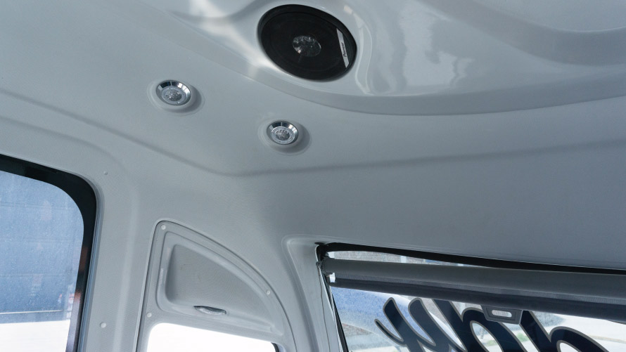 Gravado natural con lineas estilizadas decorativas y definición de contornos para la colocación de luces de cabina, parlantes, entre otros.