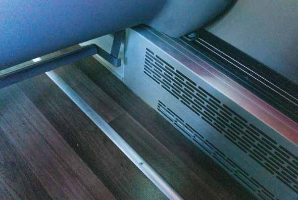 Consta de aletas de aluminio (serpentín) distribuidos en todo el salón de pasajeros; sopladores eléctricos silenciosos para un flujo de calor homogeneo.