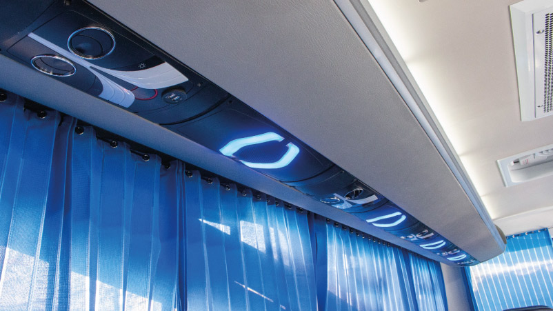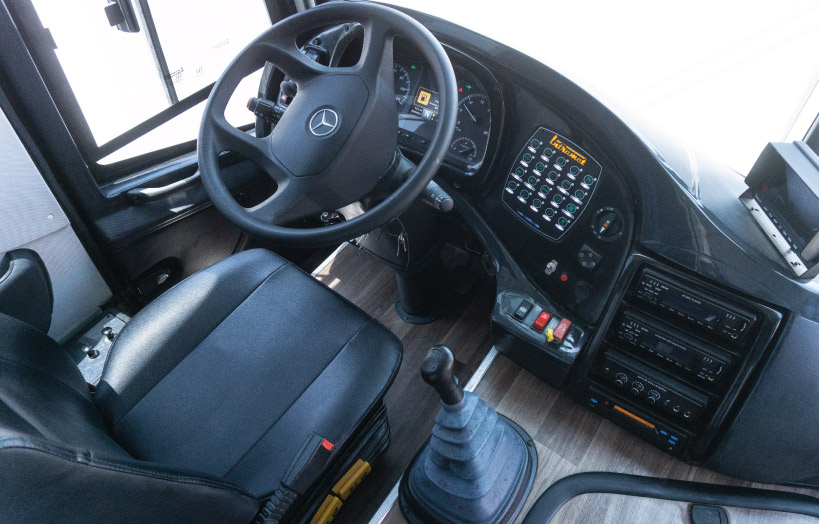 Diseñado para FACILITAR LA OPERACIÓN de los diferentes mandos de control del bus; diseño AERODINÁMICO y protección externa con poliuretano rígido.